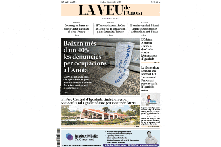 Portada: Baixen més d’un 40% les denúncies per ocupacions a l’Anoia