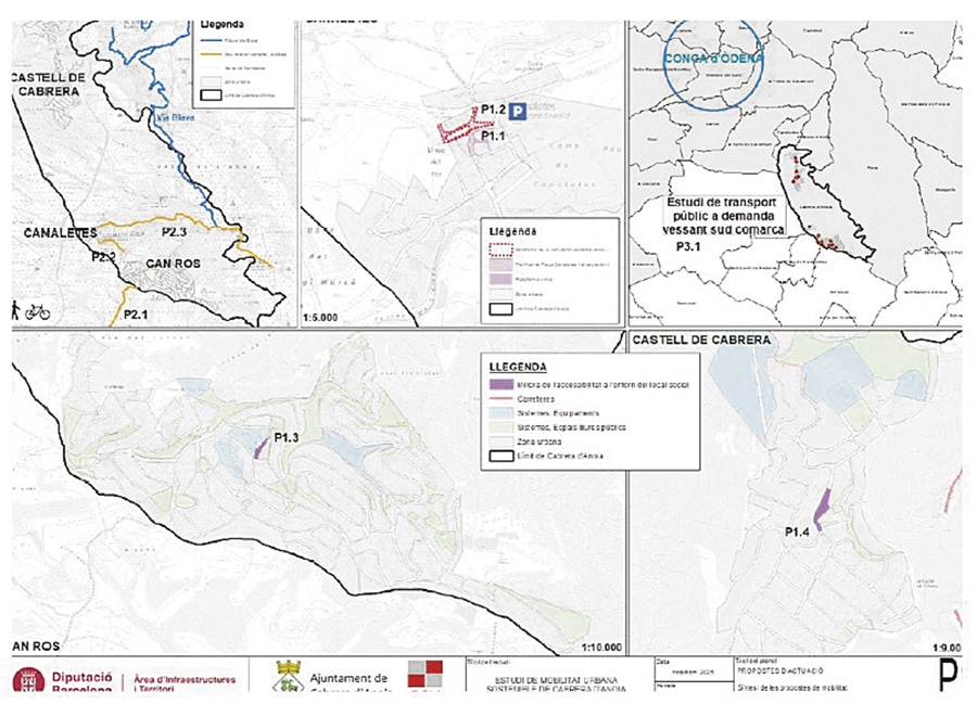 És per aquest motiu que entre les accions que es proposen hi ha les de pacificar la Plaça Canaletes i el seu entorn; restricció de la circulació, excepte veïns, al nucli de Canaletes; millorar l’accessibilitat a les urbanitzacions de Can Ros i Cabrera d’Anoia; i treballar en la creació d’un transport a demanda al vessant sud de la comarca.