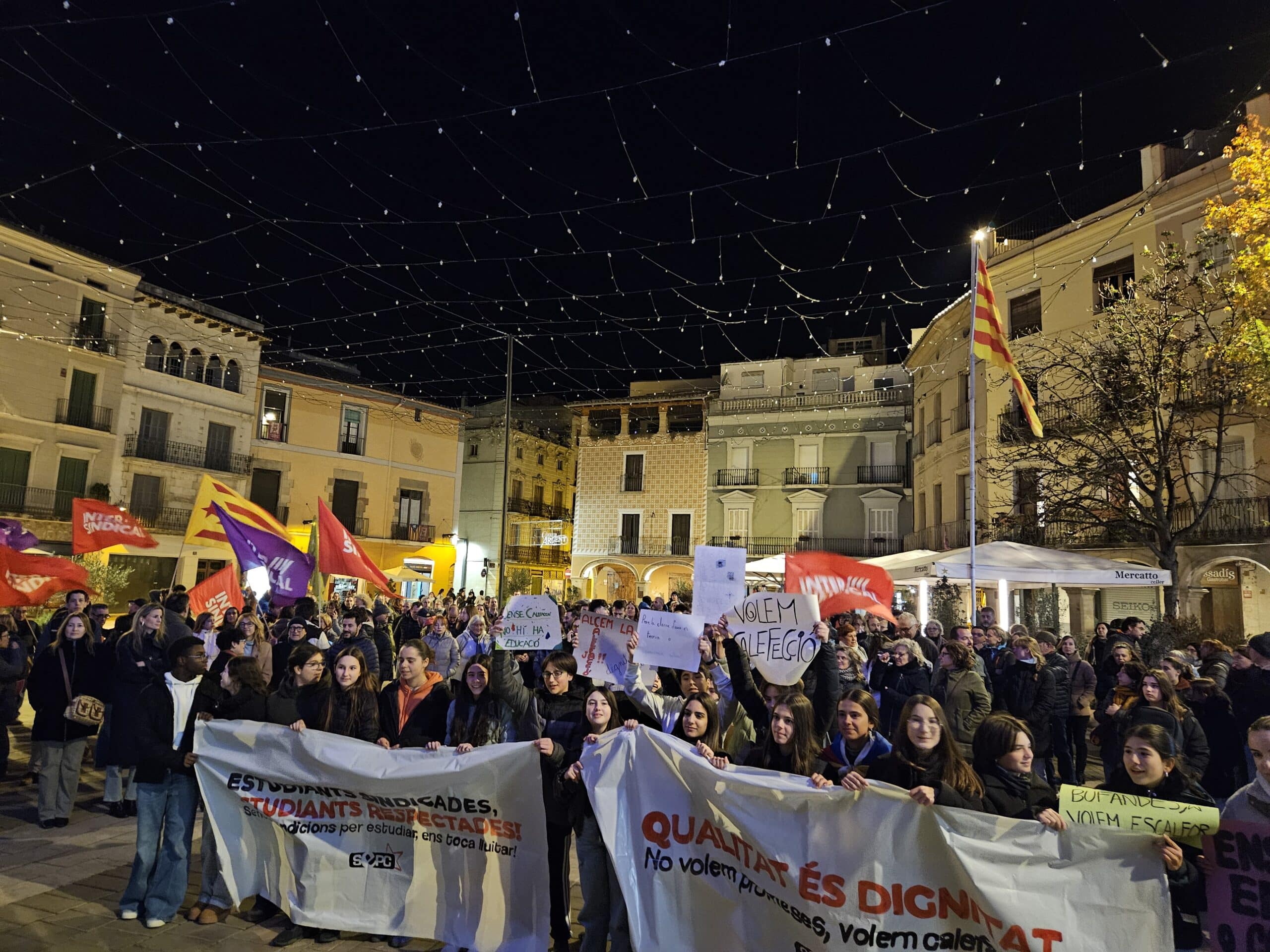 Centenars de persones es van concentrar aquest dimarts al vespre davant de l’Ajuntament d’Igualada per exigir una solució efectiva per als problemes amb la calefacció a l’institut Joan Mercader.