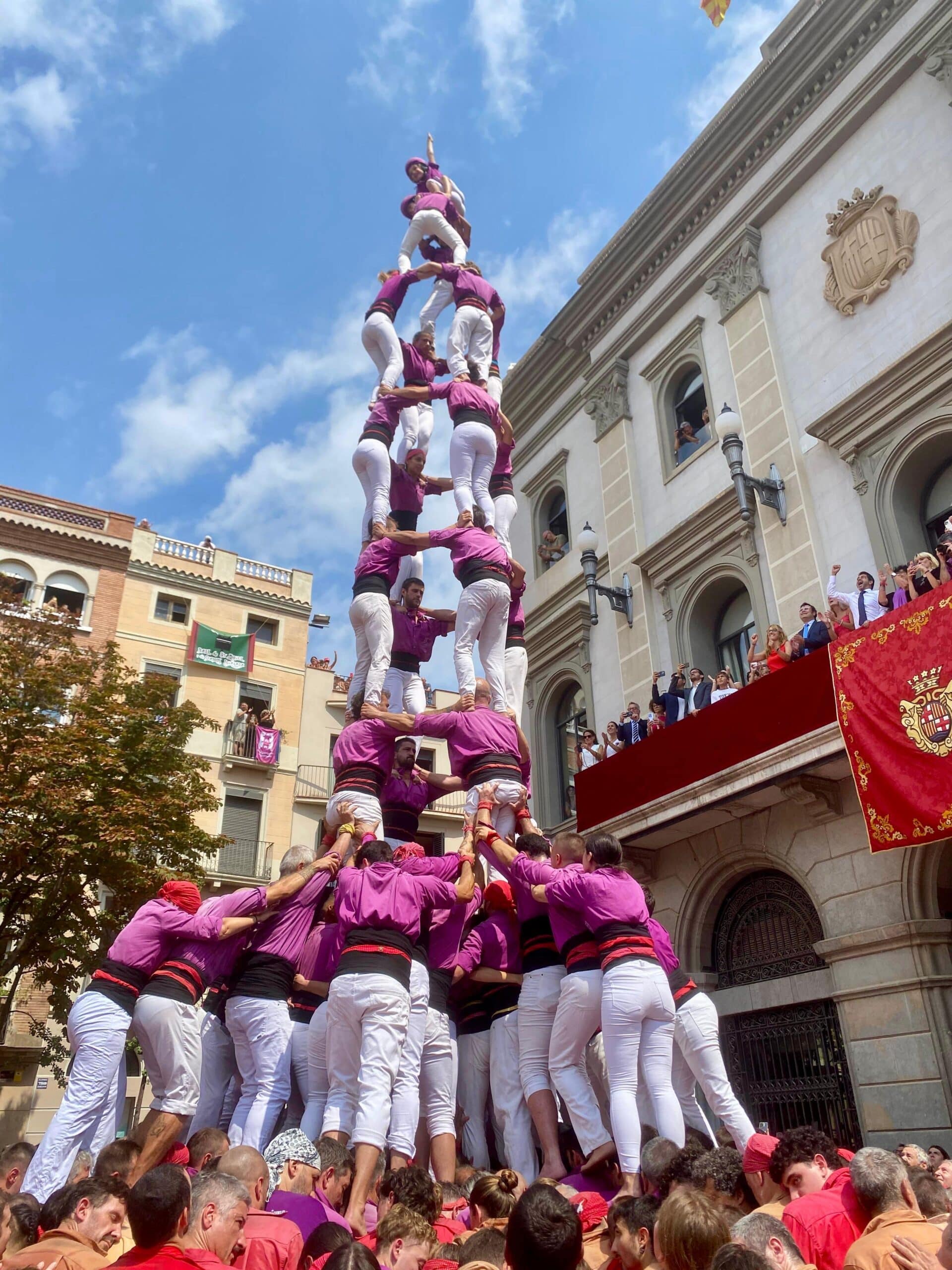 La colla local iniciava la primera ronda descarregant un 5 de 8, amb un sol de justícia sobre els caps dels castellers i del públic. Al balcó de l’ajuntament, l’actriu igualadina Diana Gómez – ambaixadora dels morats -, ho celebrava com qui més.