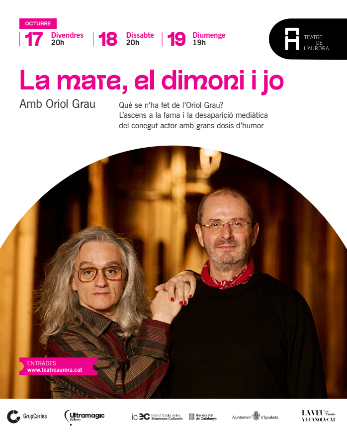 La mare, el dimoni i jo és el primer monòleg d’autoficció d’Oriol Grau, una proposta teatral honesta i desacomplexada que barreja les memòries personals amb elements ficcionals i un punt distòpic. Amb direcció de Roberto G. Alonso i la música en viu de Roger Conesa, aquesta producció ens trasllada des dels seus inicis artístics fins al seu auge televisiu, i explora la seva misteriosa desaparició amb revelacions inconfessables.