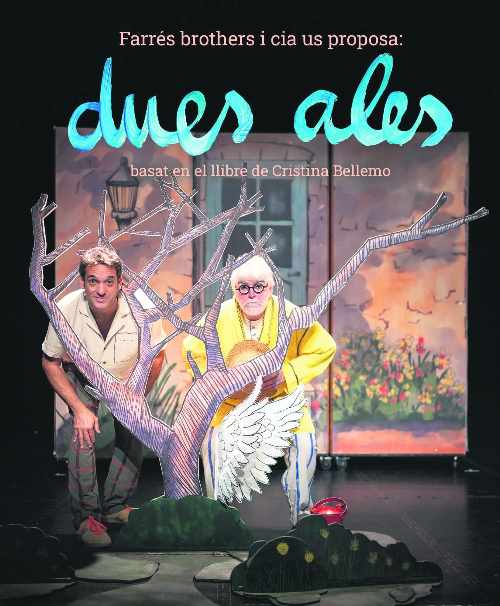 La companyia Farrés Brothers estrenarà aquest diumenge dins del Temporada Alta l’espectacle Dues Ales, on es combinen les titelles, l’humor i la poètica per parlar dels records del passat i el valor de l’amistat. La companyia anoienca és una de les més reconegudes de l’escena catalana i en aquesta ocasió portaran a la Sala La Planeta de Girona la seva nova proposta que és una adaptació de l’àlbum il·lustrat de Cristina Bellemo, que es titula igual que l’obra. Per adaptar-lo, han mantingut la seva poètica visual tan característica al mateix temps que aposten per l’humor i la proximitat per connectar amb tots els espectadors.