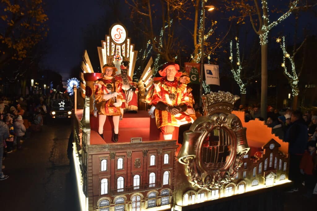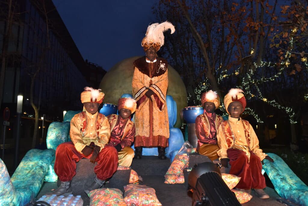 El Rei Gaspar a la seva carrossa, acompanyat dels seus petits patges. © Joan Guasch