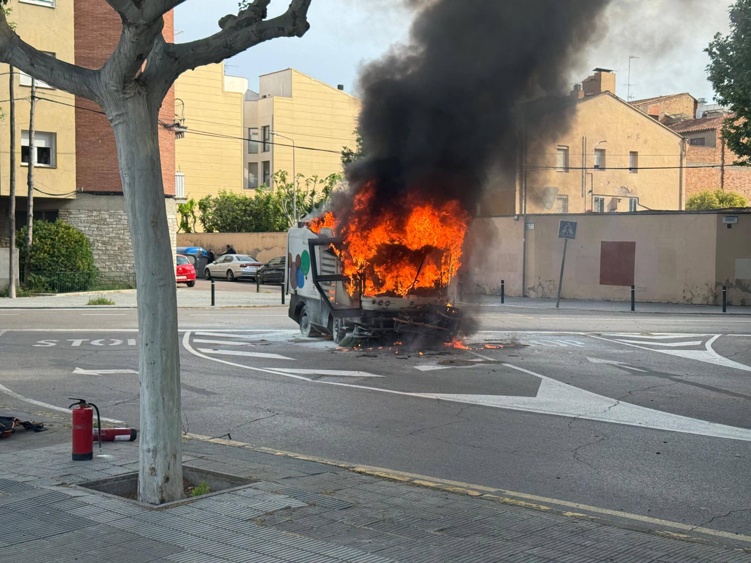 Un camió de la neteja de la brigada municipal d’Igualada s’ha incendiat per causes que encara s’estan investigant al pas de nivell de l’estació de tren d’Igualada, a l’encreuament entre el passeig Verdaguer i l’Avinguda de Montserrat.