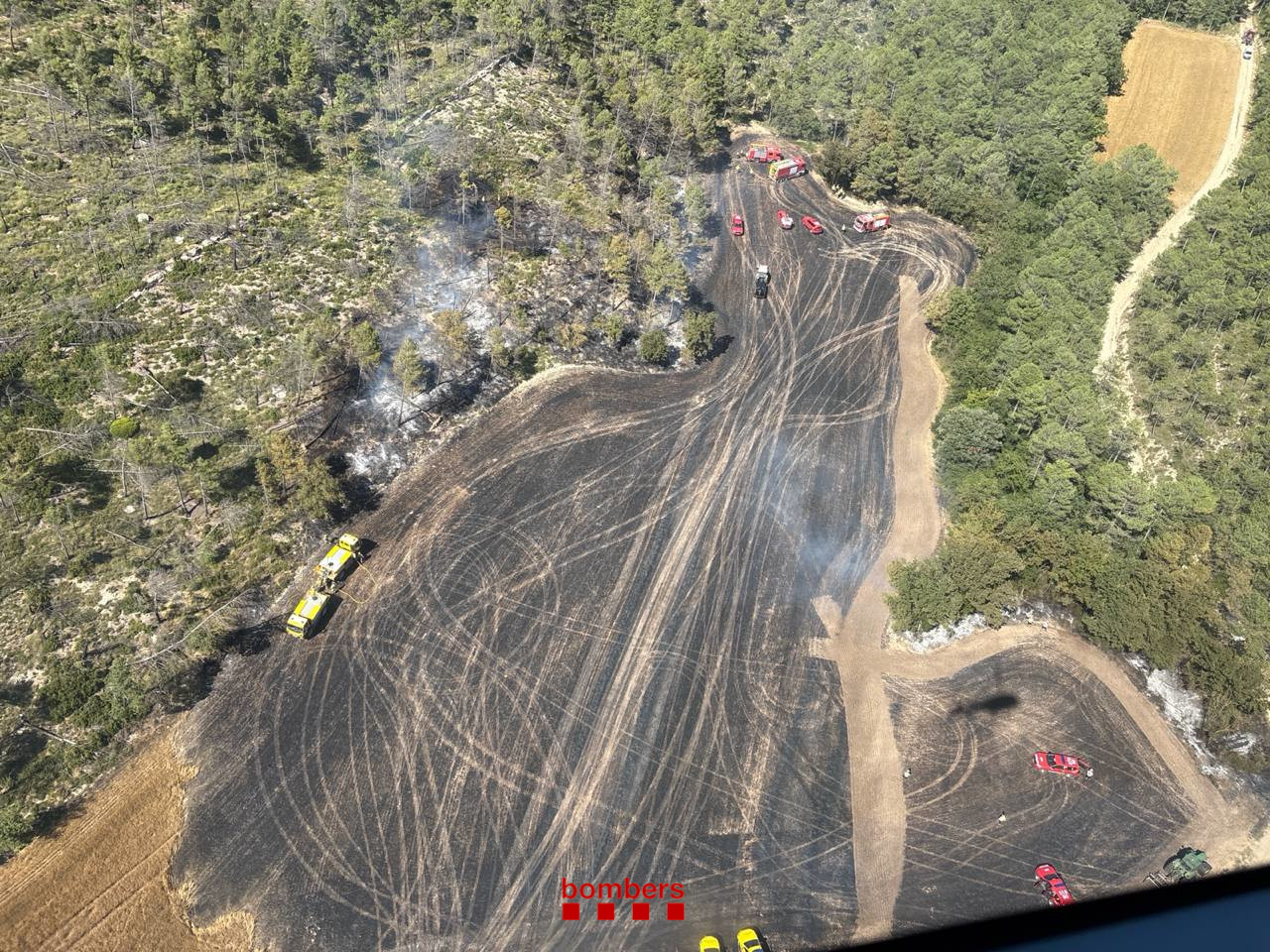Els bombers han rebut l’avís pocs minuts abans de les 16h (15:57h). El foc ha afectat completament a un camp i ha cremat 1 Ha de terreny.