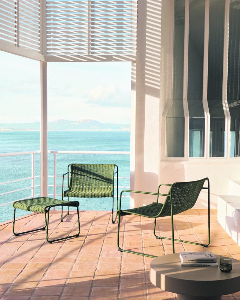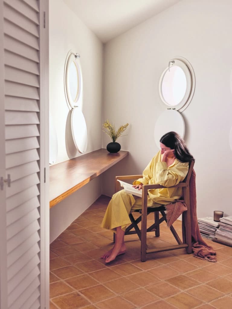 Dins de la casa, les catifes de jute amb figures geomètriques, perfectes per al dormitori o la sala d’estar, es combinen amb prestatgeries de formes geomètriques similars en fusta natural o tenyida de verd, mentre que el nou sofà Alea es vesteix de nous tons blancs en una proposta modular de tres seients amb chaiselong. Sens dubte, l’espai perfecte per a una estona de lectura.