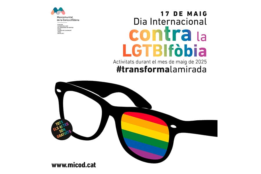 La Mancomunitat de la Conca d’Òdena ha presentat l’agenda d’actes i activitats que es duran a terme al territori durant el mes de maig amb motiu del 17M, Dia Internacional contra la LGTBIfòbia. El programa inclou diverses propostes reivindicatives i divulgatives sota el lema “Transforma la mirada”.