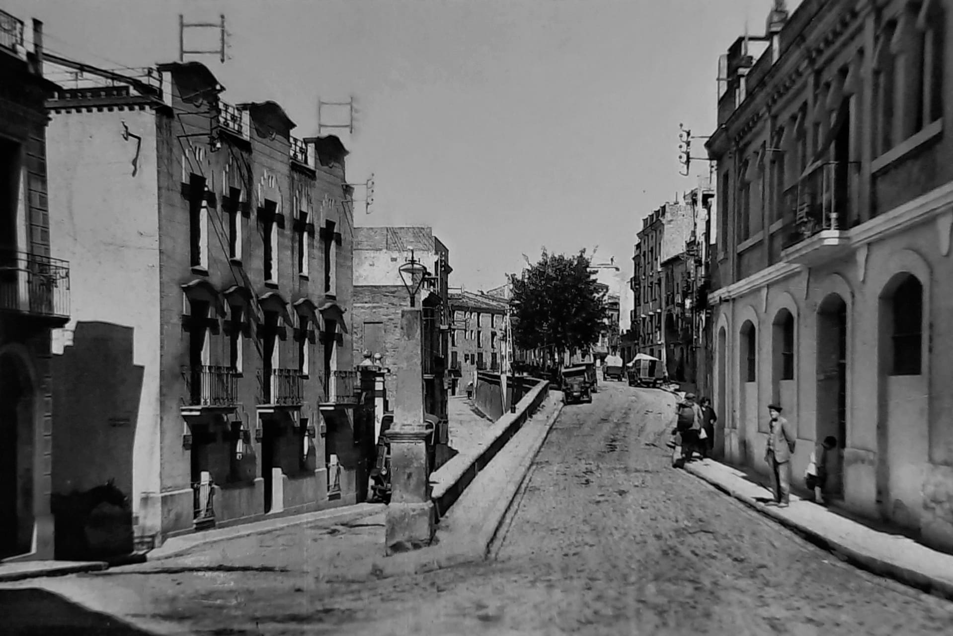 Una fotografia d’Arxiu de la dècada de 1930 – 1940 que mostra un aspecte del Passeig de Les cabres, vist des del Carrer de la Concepció. Amb una panoràmica fotogràfica d’aquesta via que arriba, aquí, a l’alçada de la Font de La carota i El Portal d’en Vives.