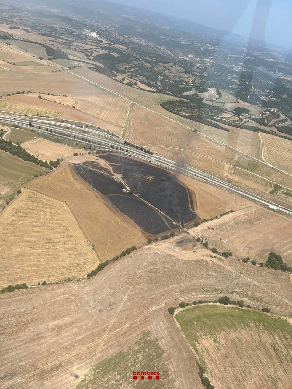 Aquest divendres, 8 d’agost, s’ha produït un incendi en uns camps de conreu a tocar de la carretera C-25, al terme municipal de Castellfollit de Riubregós.
