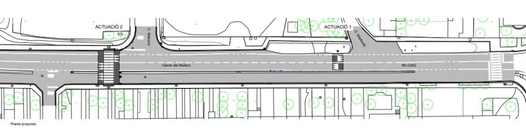 L’actuació, que té un pressupost de 76.859,51 € (IVA inclòs) i un termini d’execució d’un mes i mig, també té l’objectiu de pacificar l’entorn de la travessera i crear punts de creuament de vianants.