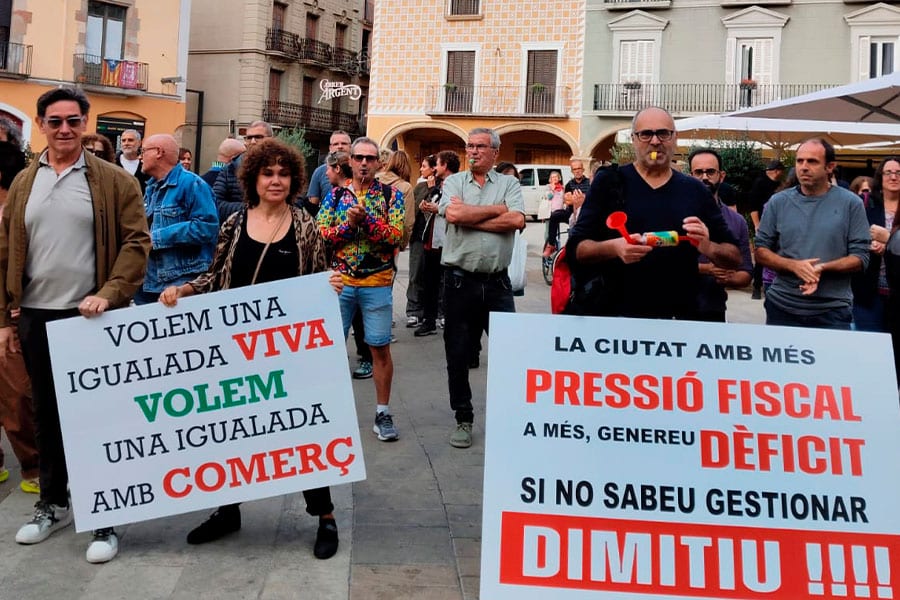 Unes 150 persones s’han manifestat avui dilluns al matí a la plaça de l’Ajuntament d’Igualada per protestar per l’augment de la taxa municipal d’escombraries en l’àmbit comercial. Els manifestants, proveïts amb xiulets, han protestat durant mitja hora, lluïnt pancartes en les quals es podia llegir “La ciutat amb més pressió fiscal. A més, genereu dèficit. Si no sabeu gestionar dimitiu!”, o “Volem una ciutat viva, volem una Igualada amb comerç”.