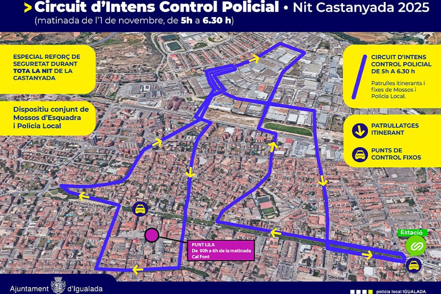 A més a més, durant la matinada del dia 1 de novembre, de 5h a 6.30h, es crearà un Circuit d’Intents Control Policial amb patrulles itinerants i patrulles fixes que unirà els principals punts d’activitat nocturna.