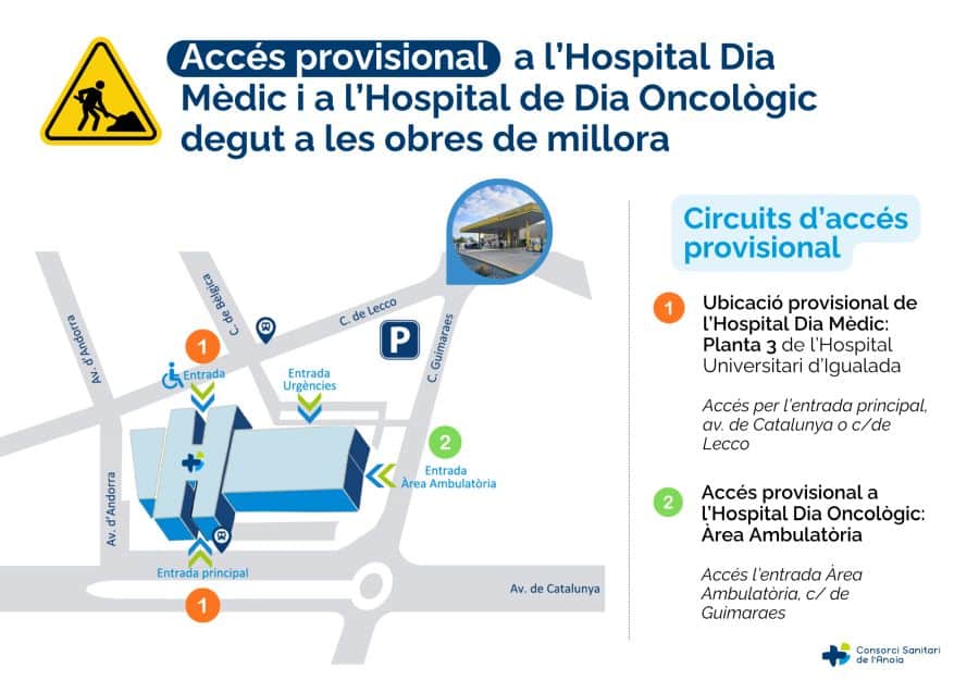 Les obres també comportaran canvis en l’accés a l’Hospital de Dia Oncològic. Mentre durin els treballs, l’entrada s’haurà de fer a través de l’Àrea Ambulatòria (carrer de Guimaraes).