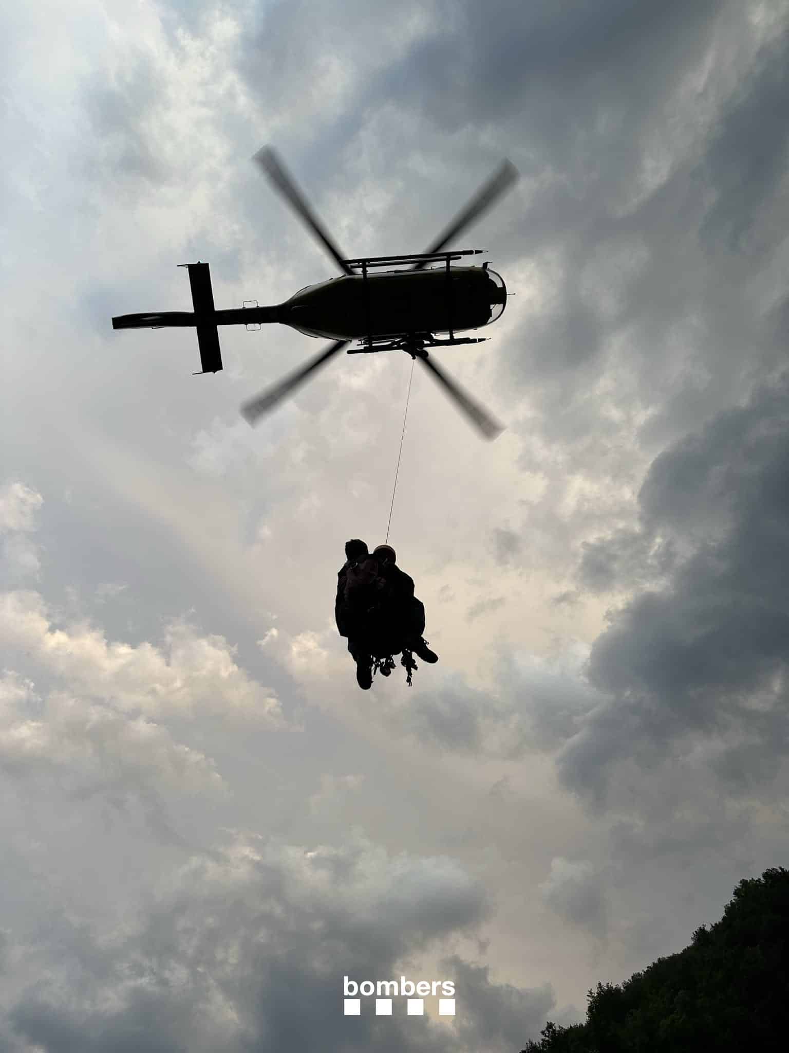 Els bombers van rebre l’avís a les 17.17h a la zona dels Amorriadors, en un lloc de difícil accés per la crescuda de la riera, i van activar 8 dotacions terrestres i un helicòpter.