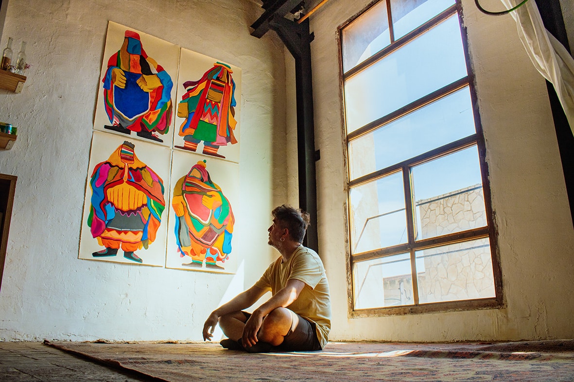 Servint-se d’inspiració en les vestimentes del poble Ioruba africà i les seves celebracions de naixements, funerals o el final de la collita, l’artista igualadí es llança a un joc de textures, formes i colors que van més enllà de la representació figurativa i cada obra esdevé un espai per a la improvisació, on la mà de l’artista segueix el flux de la seva intuïció.