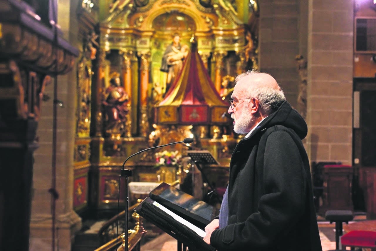 Un dels moments més destacats de la conferència va ser la descripció del retaule barroc, on Llacuna va comparar l’obra actual amb la que es va perdre durant la Guerra Civil. Per afegir-hi més força, les llums de Santa Maria es van apagar, i un focus es desplaçava per destacar els detalls concrets del que es descrivia, creant una atmosfera íntima i immersiva.