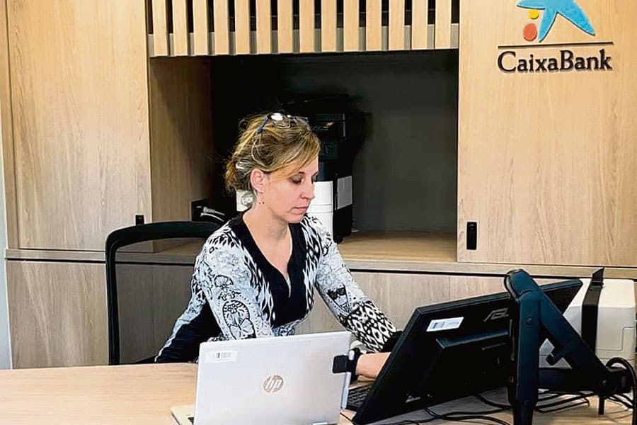 L’Elisabet Martínez és una de les treballadores de CaixaBank que opera a les oficines itinerants “resolc els dubtes que puguin anar sorgint a l’oficina, com ara ajudar en la gestió de reintegraments, d’ingressos, de transferències o de consultes d’algun rebut.