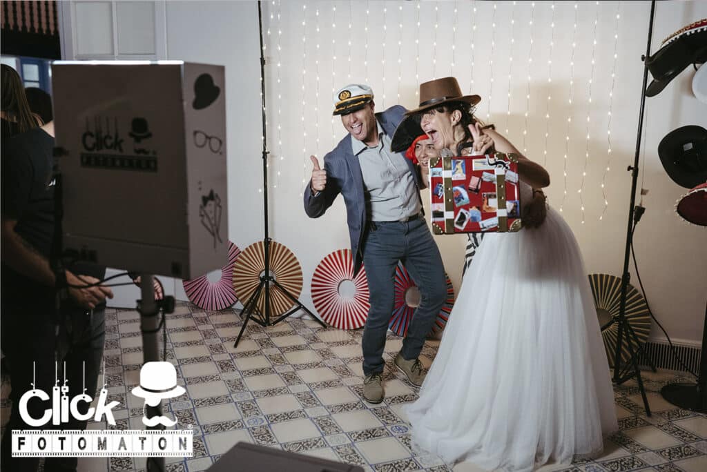 Click Fotomaton és un fotomaton elegant, divertit i ideal per aportar un toc original al teu casament. Els convidats i convidades podran gaudir d’un moment de diversió i entreteniment durant l’esdeveniment més especial. Els teus amics i familiars es podran vestir amb divertits complements d’atrezzo. Més enllà del fotomaton -i el fotomaton 360º-, també compten amb complements com el llibre de signatures i marcs per col·locar les tires de fotos. Ofereixen diferents packs per adaptar-se a totes les necessitats.