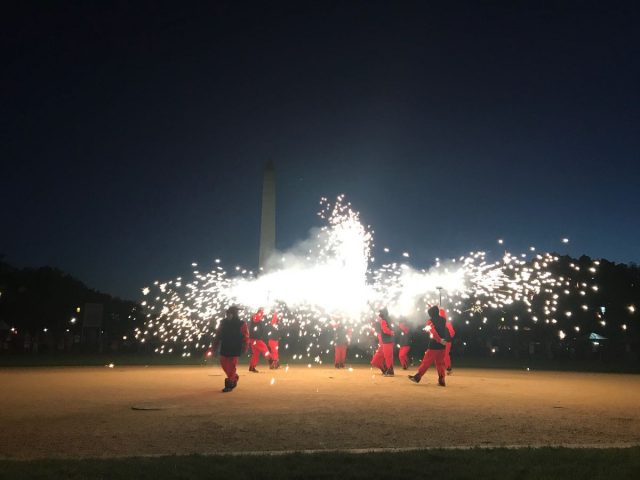 Els diables d’Igualada han tancat la última nit de l’Smithsonian Festival amb un nou espectacle de foc. La cultura catalana ha estat la convidada de l’edició d’aquest any d’aquest prestigiós festival i la colla igualadina ha tingut l’honar de representar Catalunya durant aquestes dues setmanes. El festival, que acabava aquest diumenge, va contar ahir amb una nova actuació del diables d’Igualada en què van encendre la nit de Washington. I ho van fer davant d’un escenari icònic: el monument a George Washington. L’obelisc més alt del món i que fa honor al primer president del Estats Units va presenciar l’espectacle de llum i foc dels igualadins.