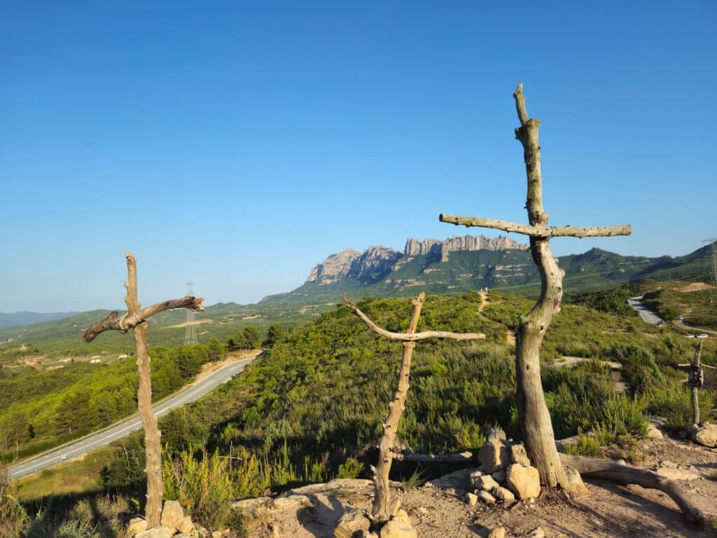 Tres creus fetes amb el tronc i les branques cremades de tres arbres observen des d’un turó la carretera de Can Maçana en direcció a Manresa. Ja gairebé són l’únic testimoni que queda d’allò que va ser el Bosc de les Creus, una intervenció en el paisatge de l’artista visual i bomber Marc Sellarès, que va nèixer de les cendres del gran incendi d’Òdena, succeït a finals de juliol del 2015 – tot just aquests dies es compleixen 10 anys -.