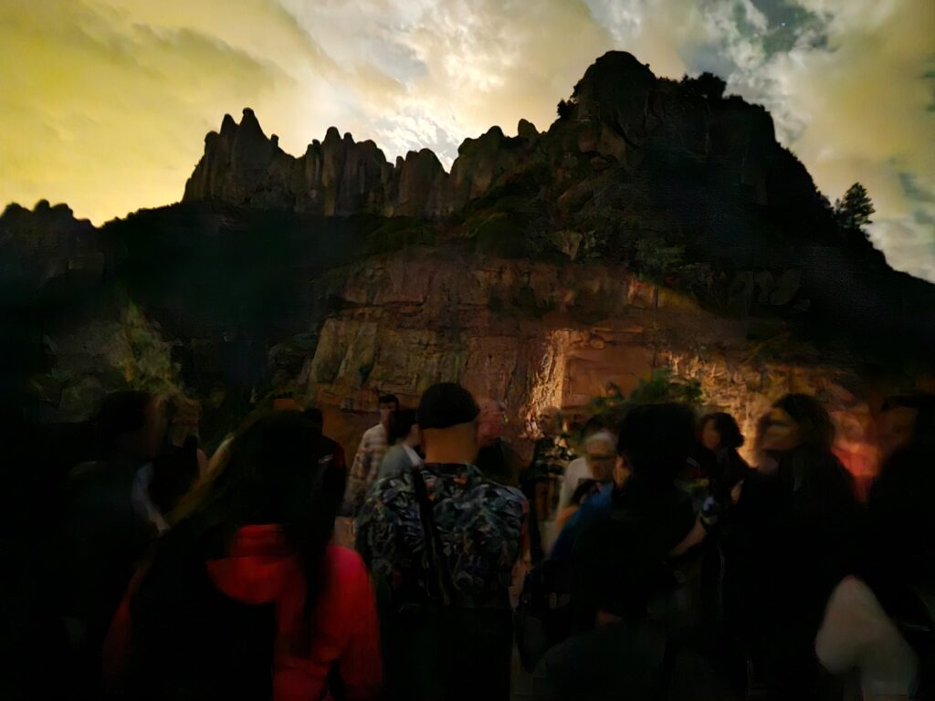 I com que Montserrat és infinita, els dies 11 ho és multiplicada per dos. Un passeig per la carretera fins a l’accés al pàrquing del monestir et permet trobar-te amb altres persones que venen a observar el cel, alguns amb aspiracions de veure quelcom, i d’altres senzillament a gaudir de l’espectacle d’un cel nocturn ben visible. Fins l’any 2024, si un decidia baixar fins a l’antic hotel abandonat Colònia Puig – avui enderrocat –, a peu de la carretera que baixa a Monistrol, es podia trobar fins i tot alguna petita rave molt senzilla. Què devien tenir a veure els extraterrestres i la festa d’aquells noiets? Res, però era dia 11 a Montserrat.